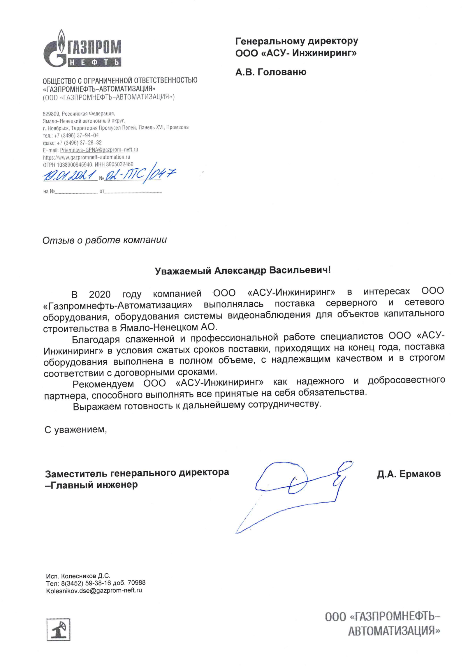 Отзыв от ООО <Газпром нефть Автоматизация>