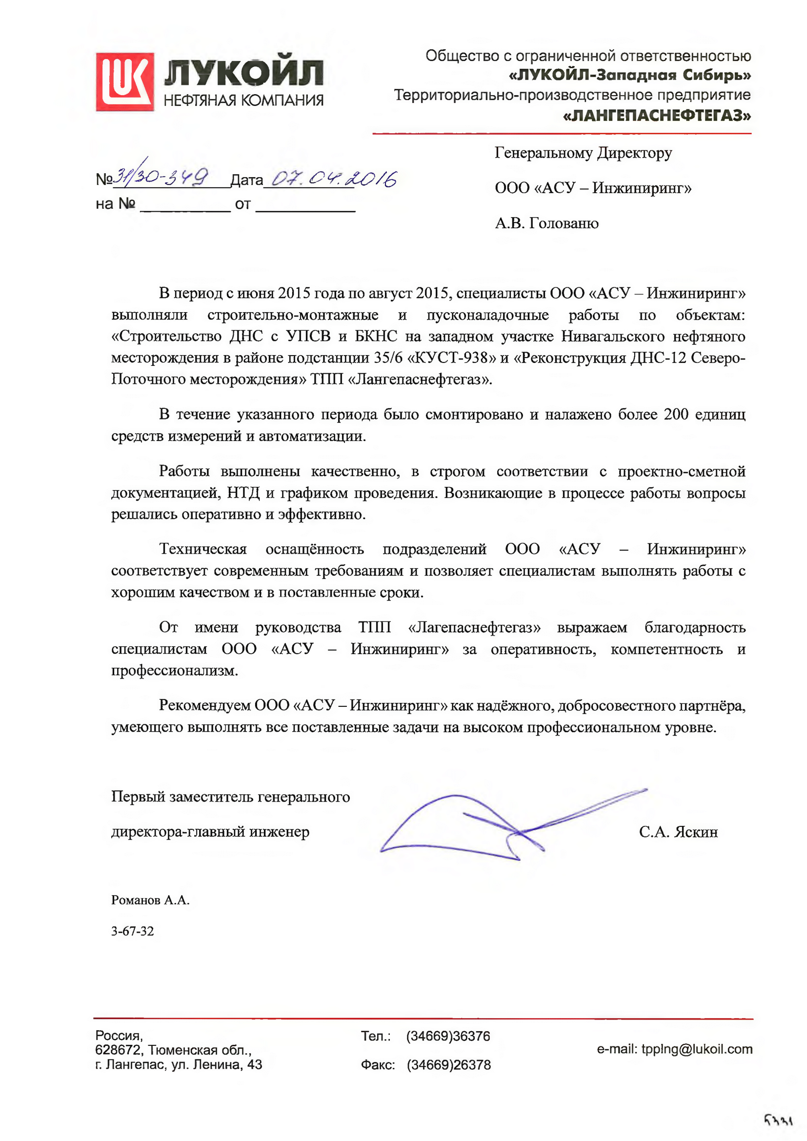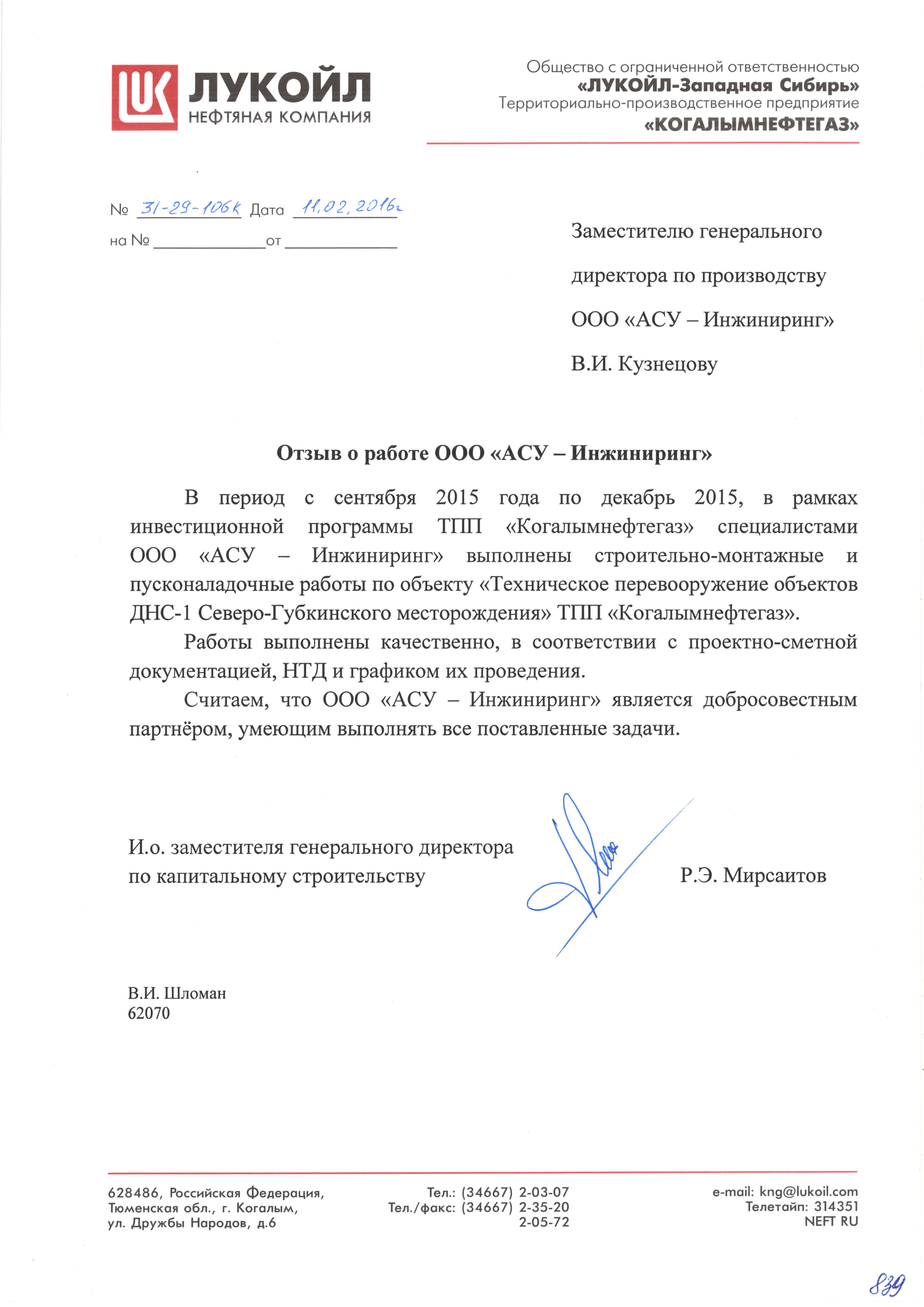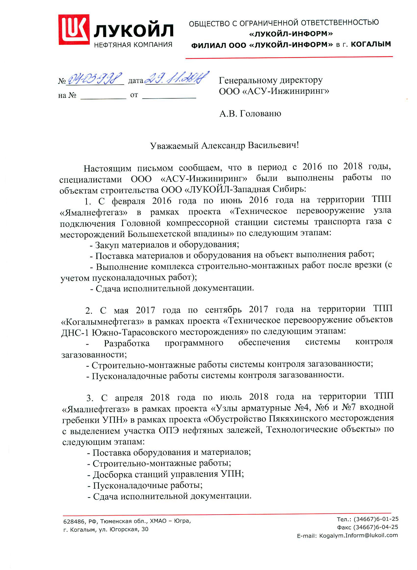 Отзыв от ООО «ЛУКОЙЛ-ИНФОРМ»