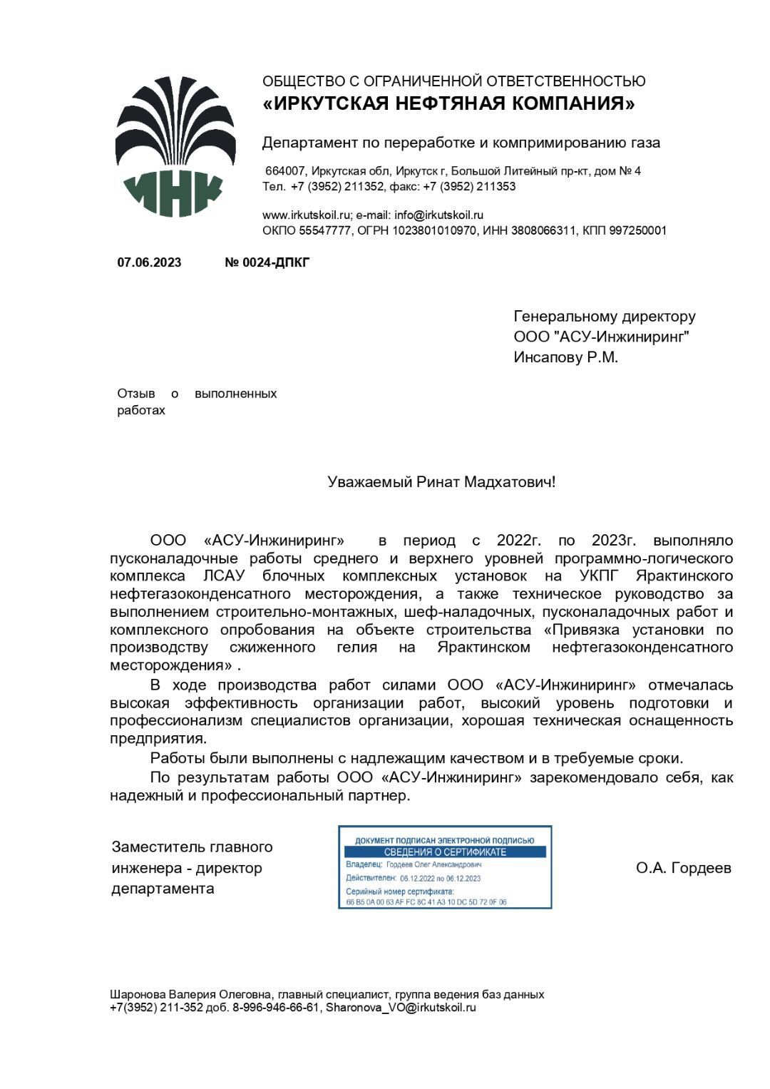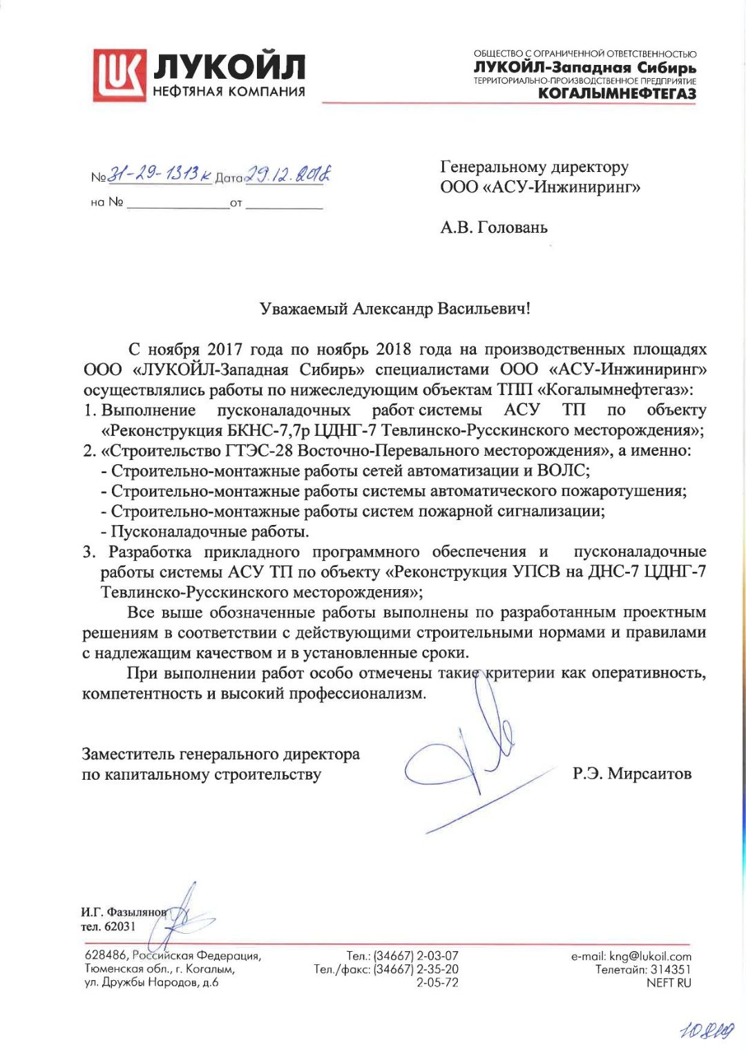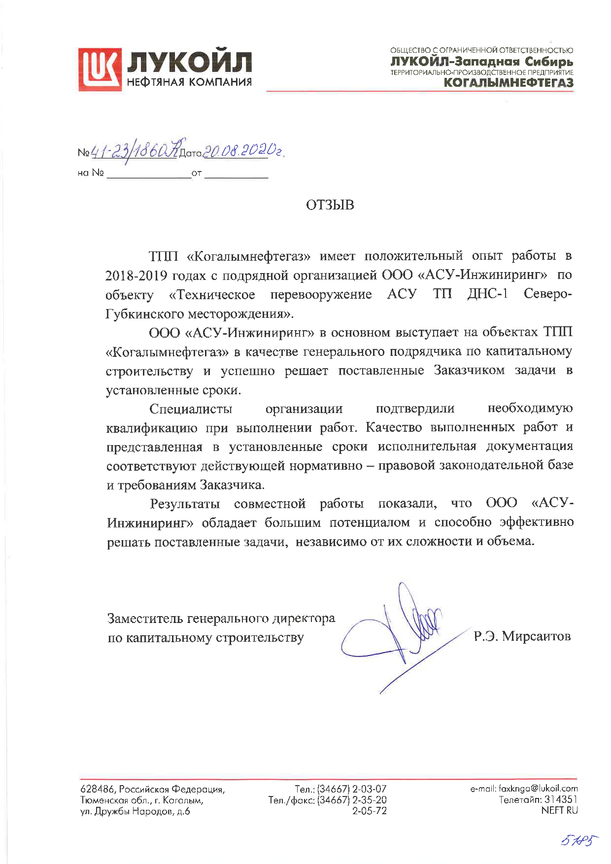 Отзыв от ООО «ЛУКОЙЛ-ИНФОРМ»