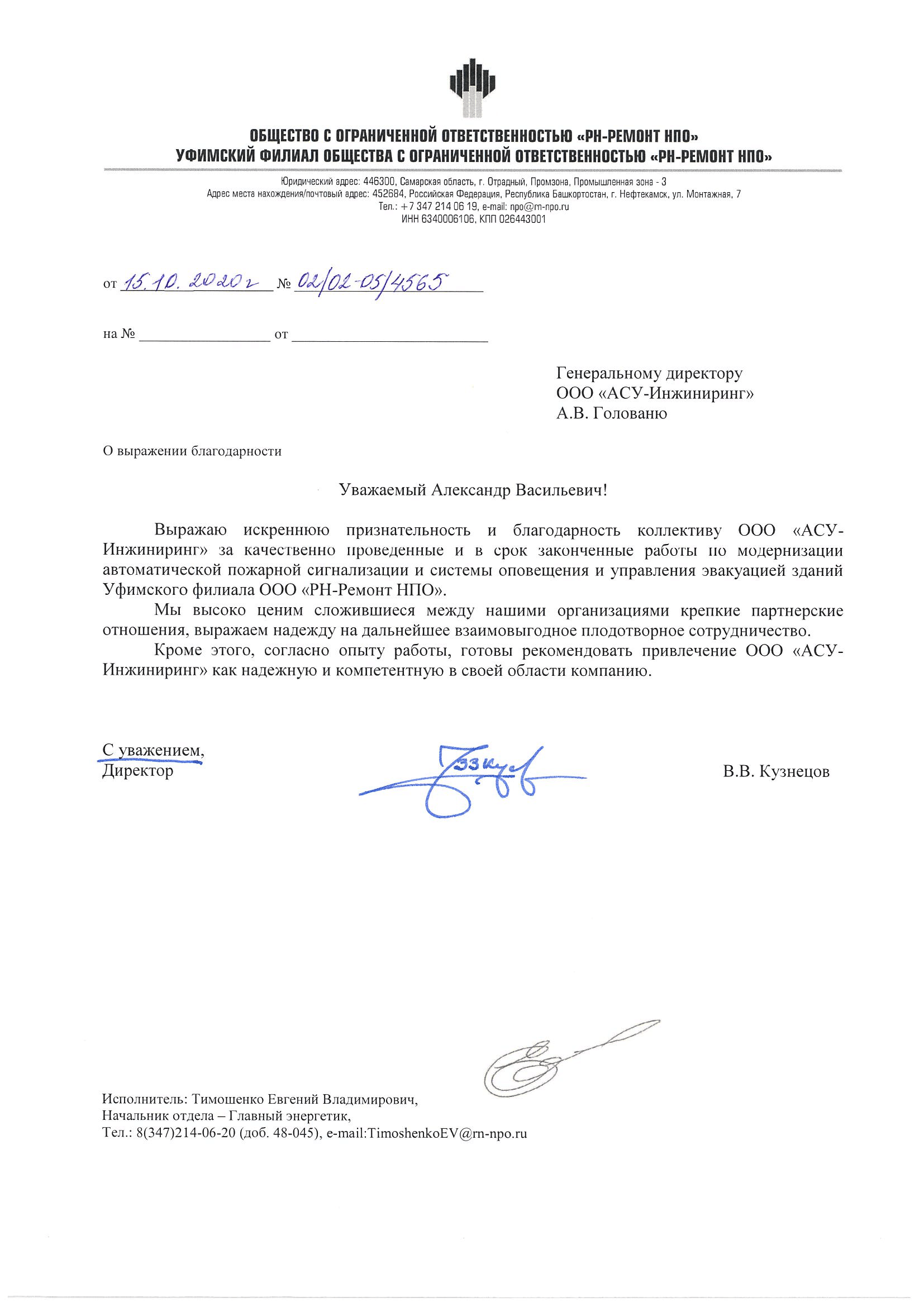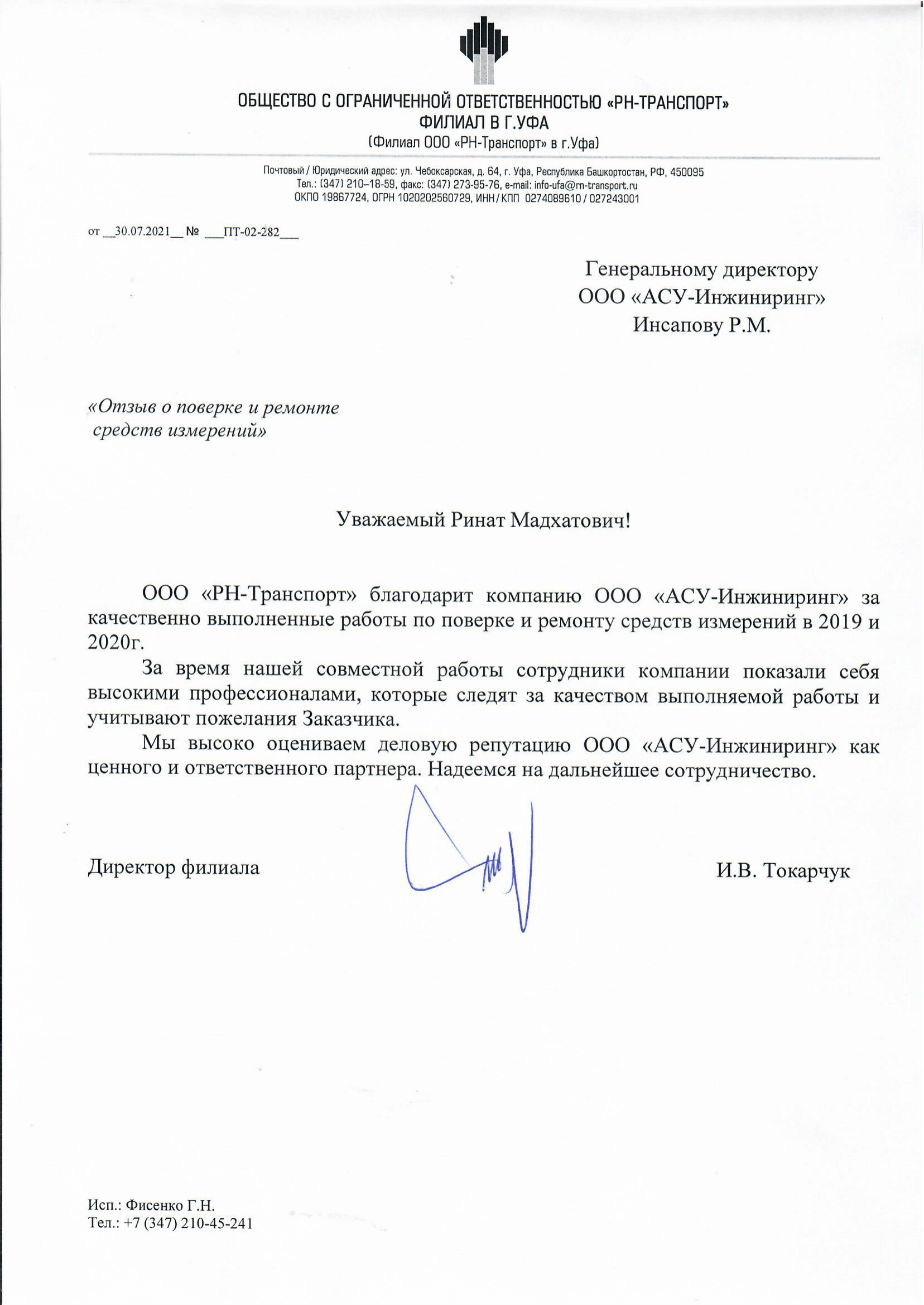 Отзыв от ООО "РН-ТРАНСПОРТ"
